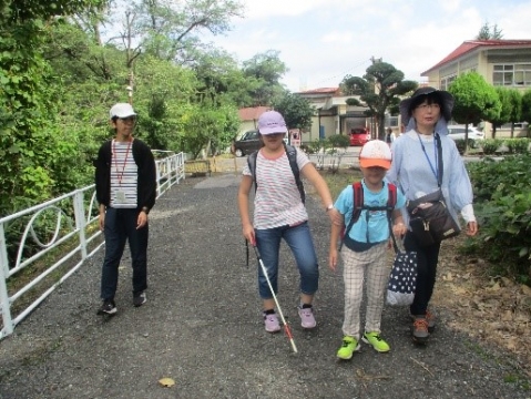 バス停までは、先日行われたスポーツフェスティバルの赤組と白組に分かれて徒歩で移動しました。途中、白杖を使って一人で歩くことにチャレンジした児童もいました。また、下級生と手をつないで一緒に歩いてくれる頼もしい高学年の児童もいました。