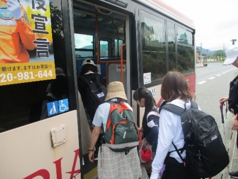 バス停からは路線バスに乗って移動しました。中学年は整理券をとって現金で支払い、高学年はICカードを使って運賃を支払う学習も行いました。