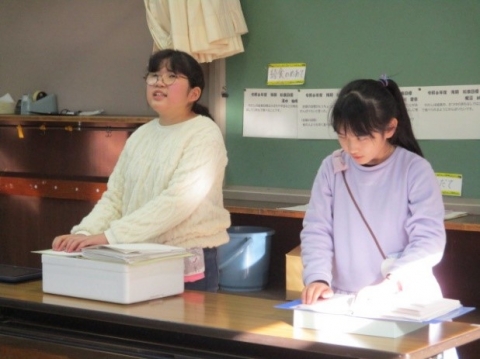 6年2組は、お米の消費量の都道府県ランキングを発表。得意な電車の路線名などをヒントに出題し、会場は盛り上がりました。