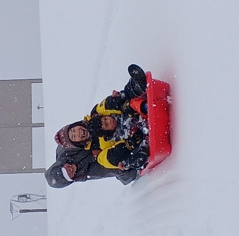 雪山教室に行った3・4・6年2組は、山形市にある「みはらしのミュージアムパーク」の広大な坂を、歩いたりソリですべり降りたりして冬を満喫しました。